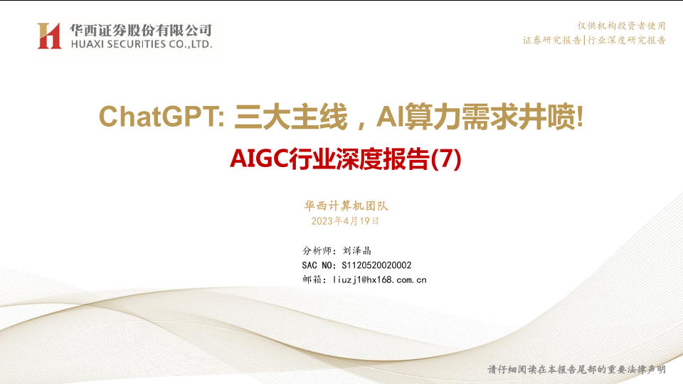 【华西证券】【20230419】AIGC行业深度报告(7):ChatGPT,三大主线,AI算力需求井喷!-41页