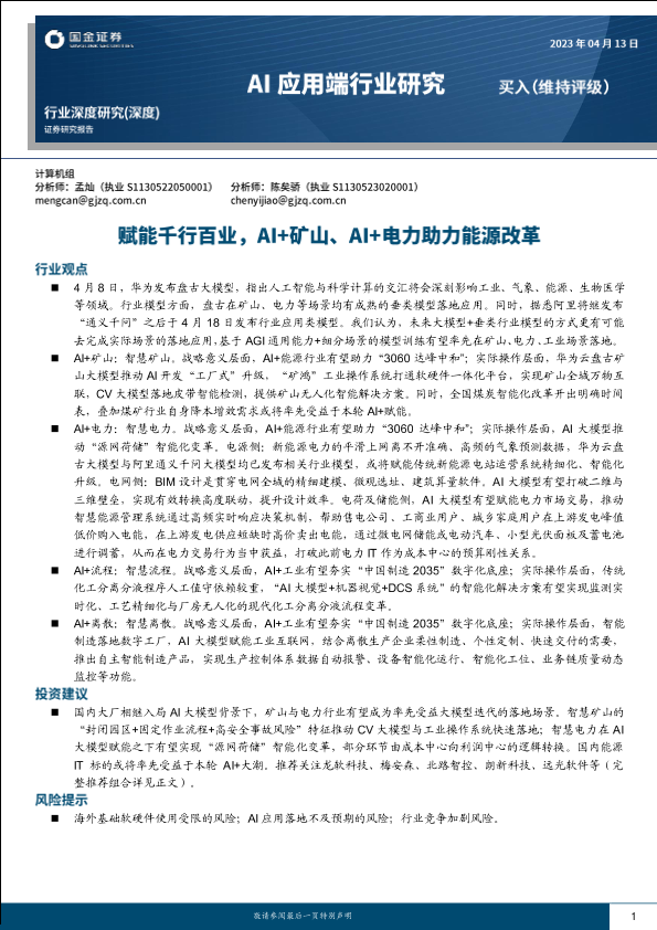 【国金证券】【20230413】AI应用端行业深度研究:赋能千行百业,AI+矿山、AI+电力助力能源改革-36页