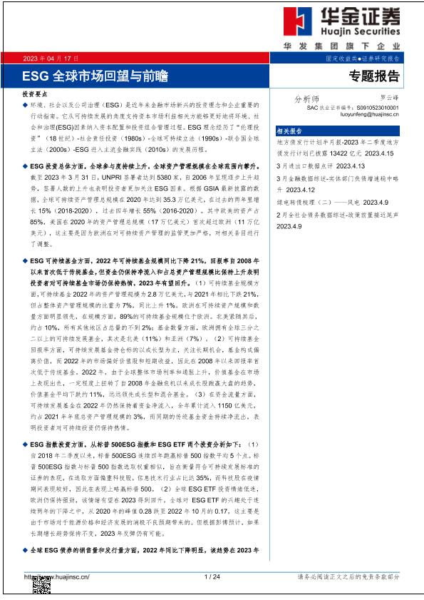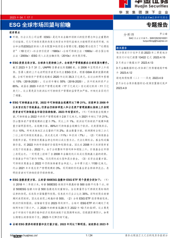 【华金证券】【20230417】ESG全球市场回望与前瞻-24页