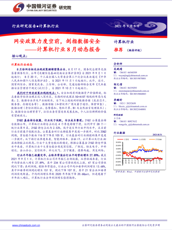 【银河证券】【20210905】计算机行业8月动态报告:网安政策力度空前,剑指数据安全-48页