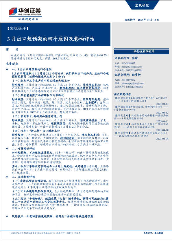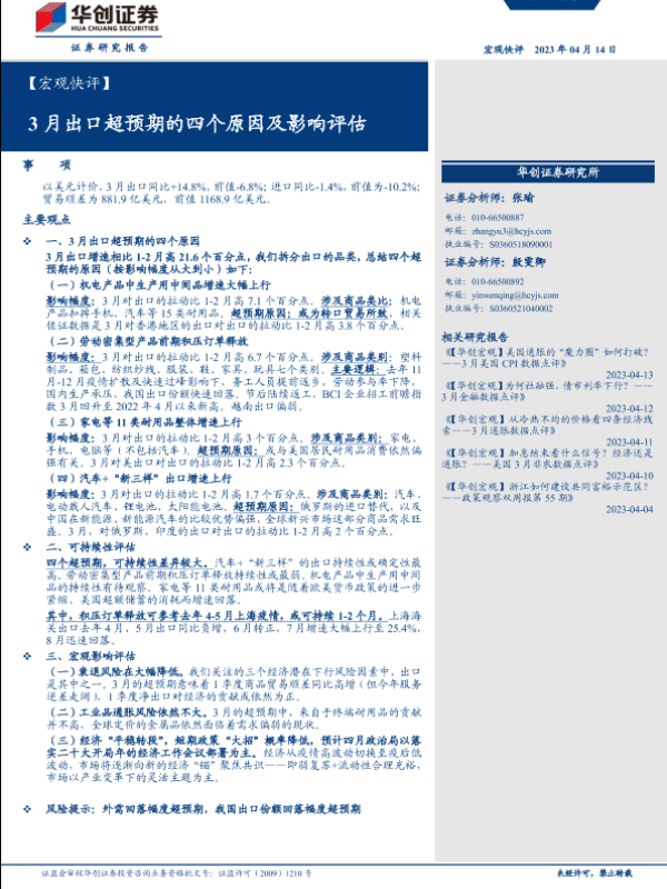 【华创证券】【20230414】【宏观快评】3月出口超预期的四个原因及影响评估-15页