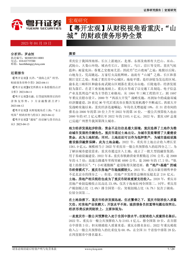 【粤开证券】【20230419】从财税视角看重庆:“山城”的财政债务形势全景-24页