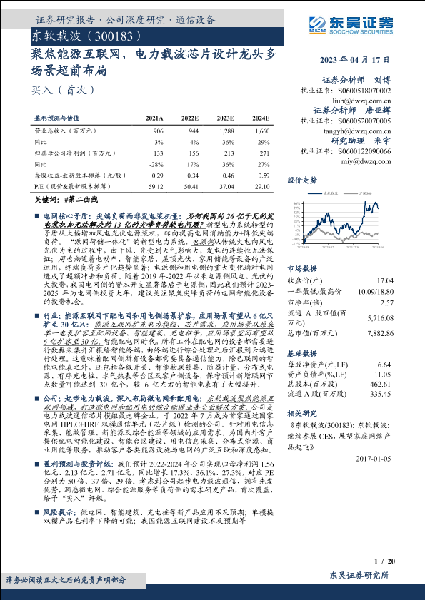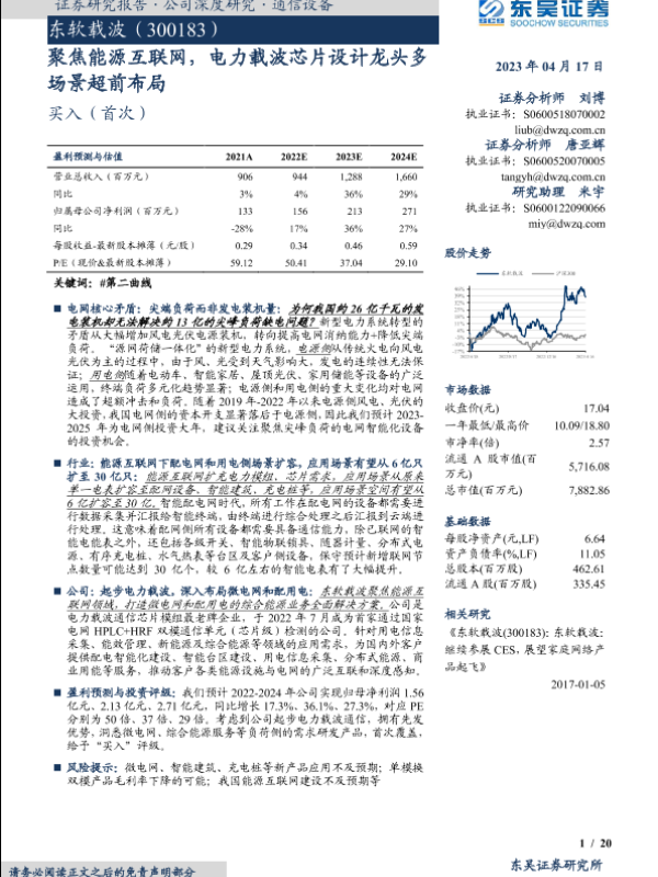 【东吴证券】【20230417】东软载波(300183)聚焦能源互联网,电力载波芯片设计龙头多场景超前布局-20页