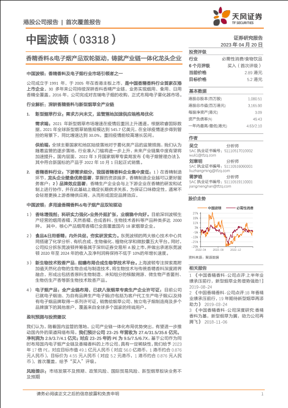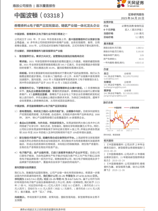 【天风证券】【20230420】中国波顿(03318)香精香料&电子烟产品双轮驱动,铸就产业链一体化龙头企业-24页