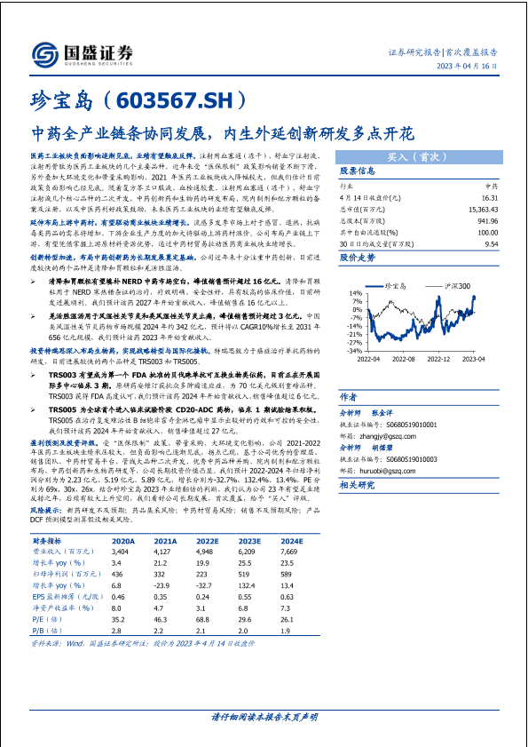 中药 全产业链 创新研发 生物药 财务预测