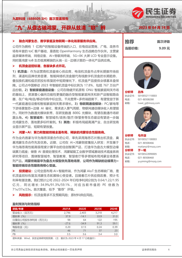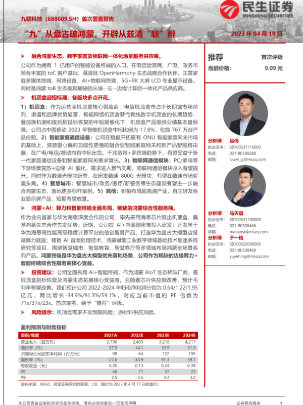 【民生证券】【20230418】九联科技首次覆盖报告:“九”从盘古破鸿蒙,开辟从兹清“联”辨-20页