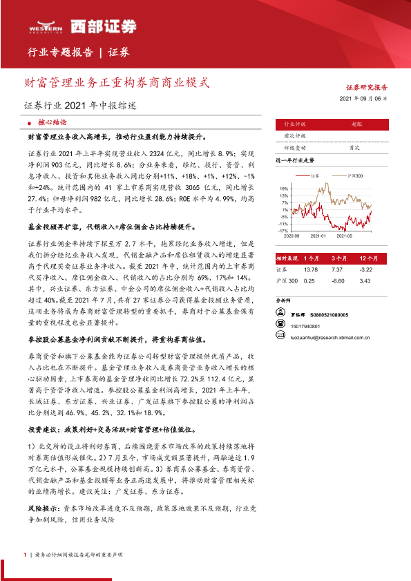 【西部证券】【20210906】证券行业2021年中报综述:财富管理业务正重构券商商业模式-31页