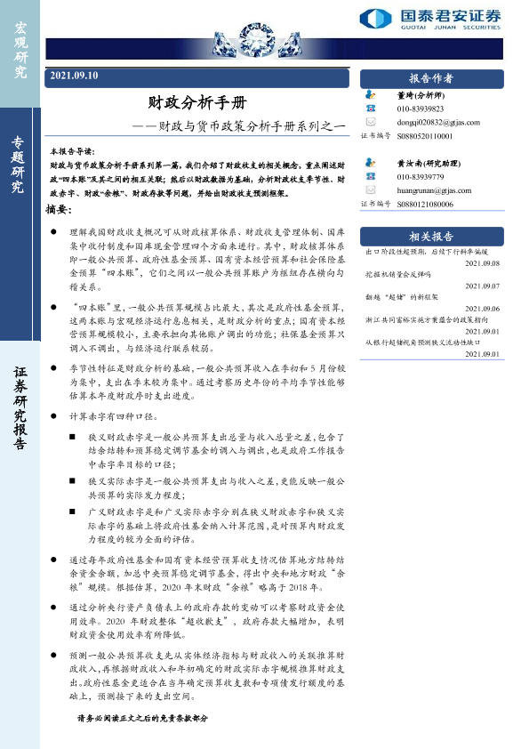 【国泰君安证券】【20210910】财政与货币政策分析手册系列之一:财政分析手册-34页