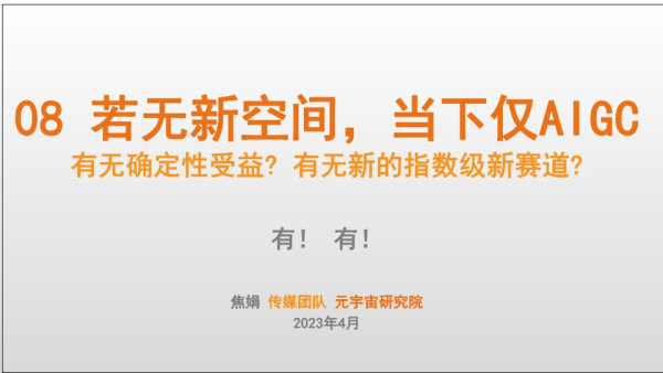 【安信证券】【20230419】传媒行业:08若无新空间,当下仅AIGC,有无确定性受益?有无新的指数级新赛道?-20页