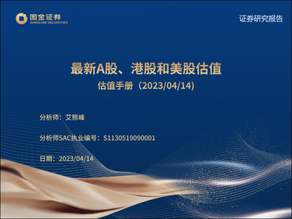 【国金证券】【20230414】估值手册:最新A股、港股和美股估值-27页