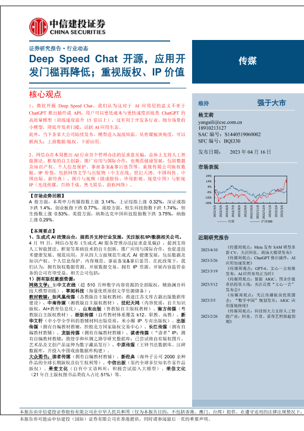 【中信建投证券】【20230416】传媒行业:Deep Speed Chat开源,应用开发门槛再降低;重视版权、IP价值-30页
