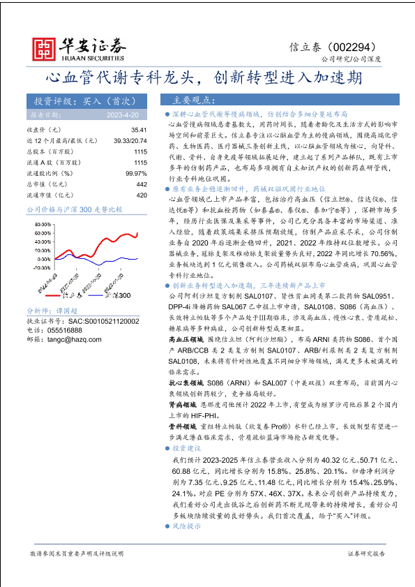 【华安证券】【20230420】信立泰(002294)心血管代谢专科龙头,创新转型进入加速期-33页