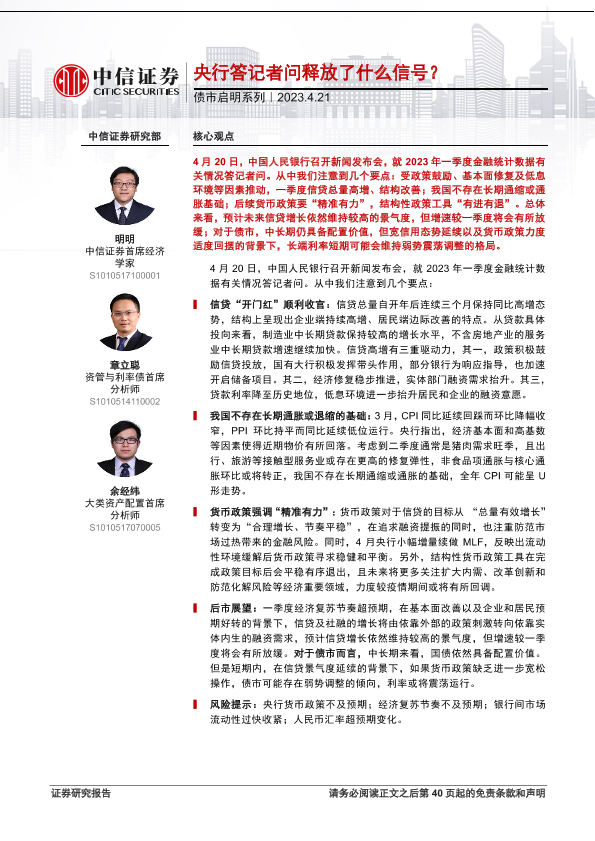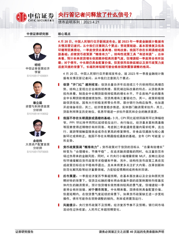 【中信证券】【20230421】债市启明系列:央行答记者问释放了什么信号?-41页