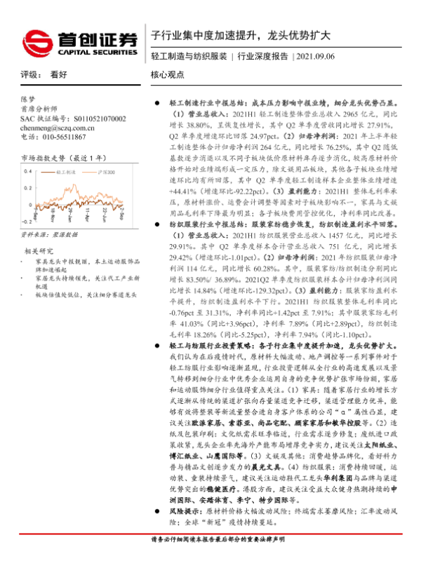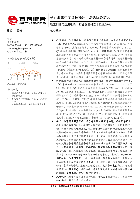 【首创证券】【20210906】轻工制造与纺织服装行业深度报告:子行业集中度加速提升,龙头优势扩大-22页