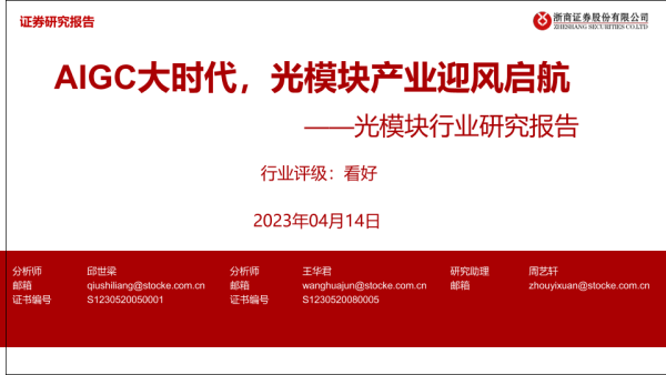 【浙商证券】【20230414】光模块行业研究报告:AIGC大时代,光模块产业迎风启航-41页