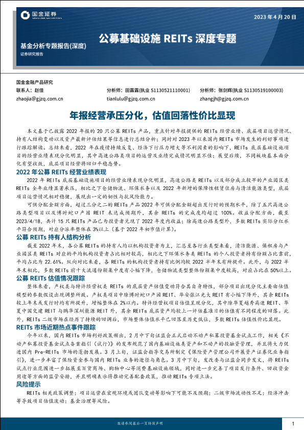 【国金证券】【20230420】公募基础设施REITs深度专题:年报经营承压分化,估值回落性价比显现-20页