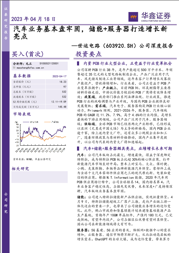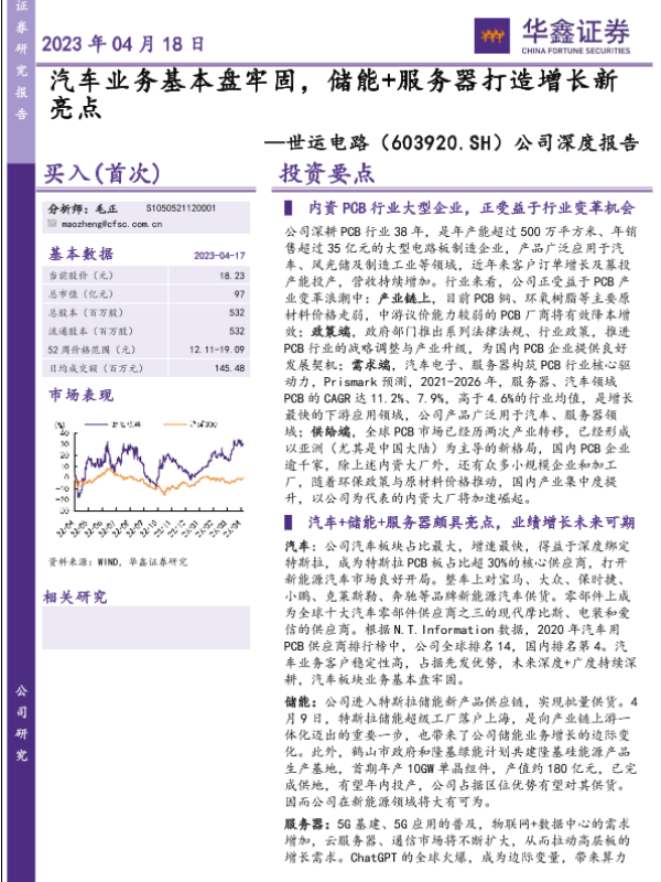 【华鑫证券】【20230418】公司深度报告:汽车业务基本盘牢固,储能+服务器打造增长新亮点-40页