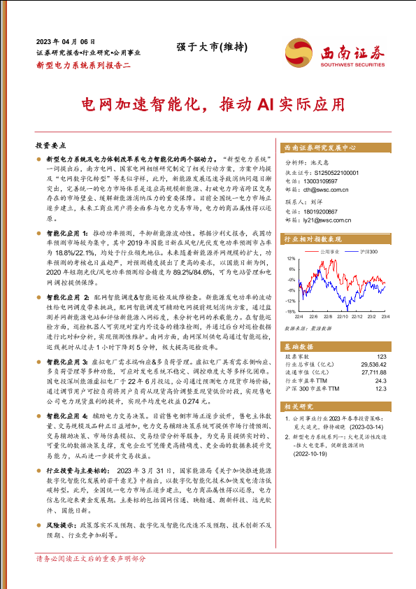 【西南证券】【20230406】公用事业行业新型电力系统系列二:电网加速智能化,推动AI实际应用-26页