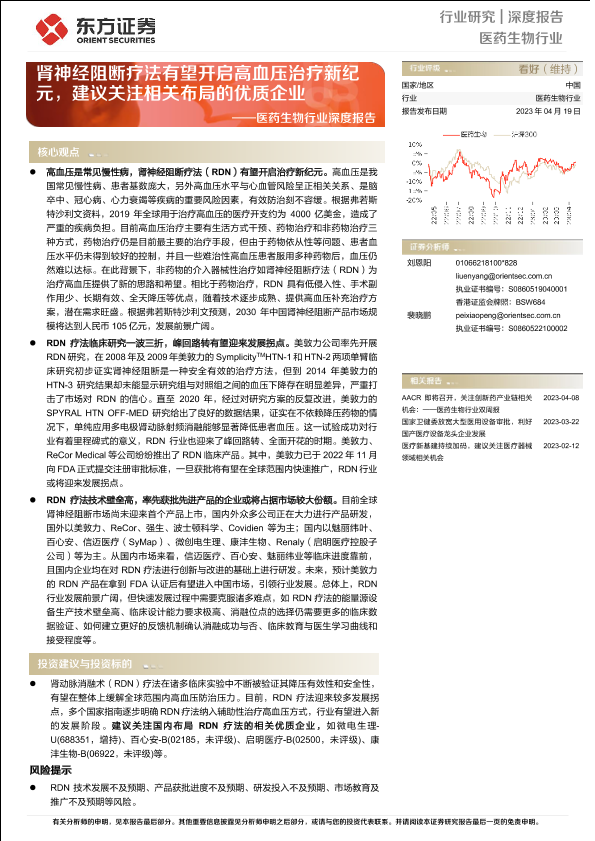 【东方证券】【20230419】医药生物行业深度报告:肾神经阻断疗法有望开启高血压治疗新纪元,建议关注相关布局的优质企业-21页