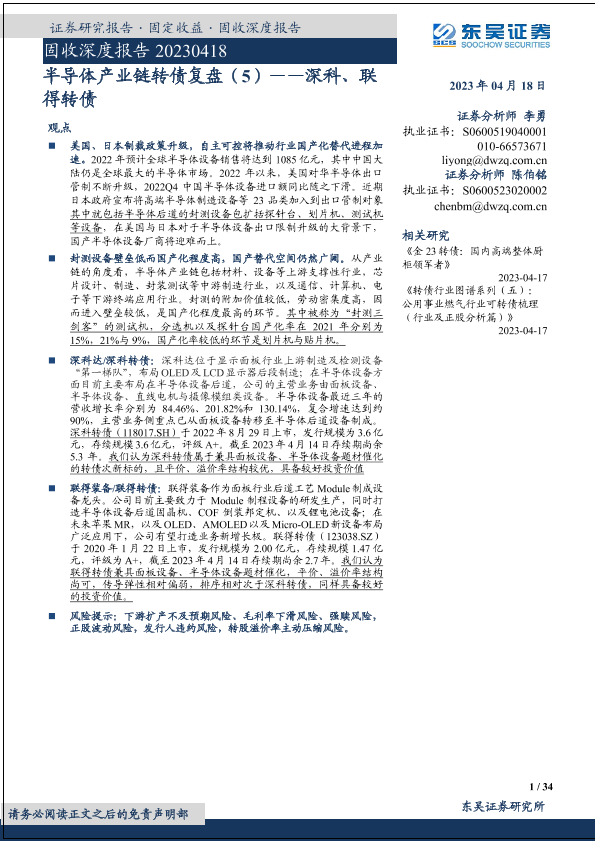 【东吴证券】【20230418】半导体产业链转债复盘(5):深科、联得转债-34页