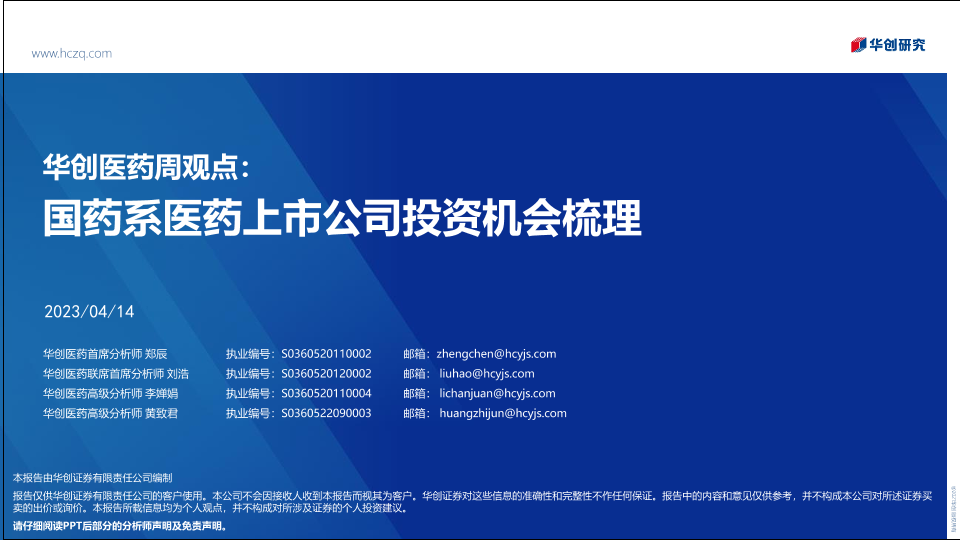 【华创证券】【20230414】华创医药周观点:国药系医药上市公司投资机会梳理-26页