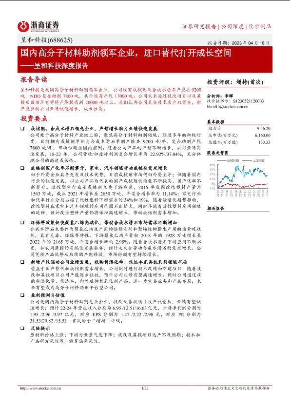【浙商证券】【20230418】呈和科技深度报告:国内高分子材料助剂领军企业,进口替代打开成长空间-22页
