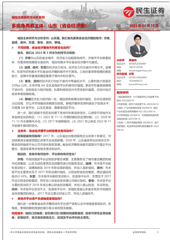 【民生证券】【20230418】城投主体研究与分析系列:多视角再看主体,山东(省会经济圈)-24页