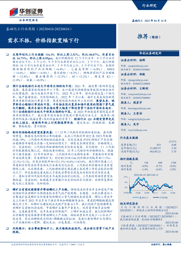【华创证券】【20230416】基础化工行业周报:需求不振,价格指数宽幅下行-66页