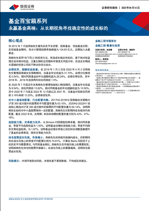 【国信证券】【20230416】永赢基金高楠,从长期视角寻找确定性的成长标的-22页