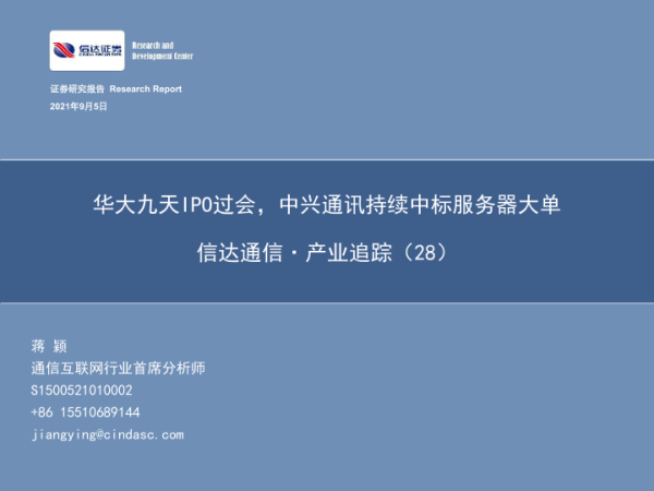 【信达证券】【20210905】通信行业·产业追踪(28):华大九天IPO过会,中兴通讯持续中标服务器大单-51页