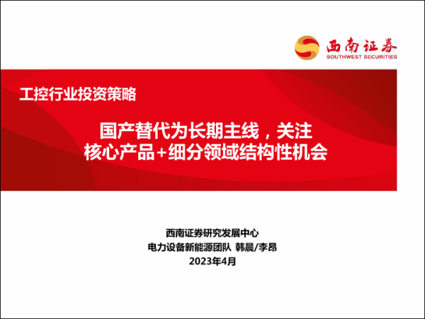 【西南证券】【20230418】工控行业投资策略:国产替代为长期主线,关注核心产品+细分领域结构性机会-69页