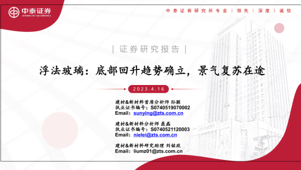 【中泰证券】【20230416】建材&新材料行业浮法玻璃:底部回升趋势确立,景气复苏在途-21页