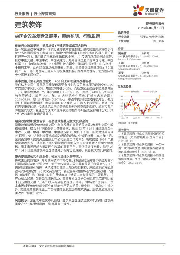 【天风证券】【20230419】建筑装饰行业央国企改革复盘及展望:柳暗花明,行稳致远-36页