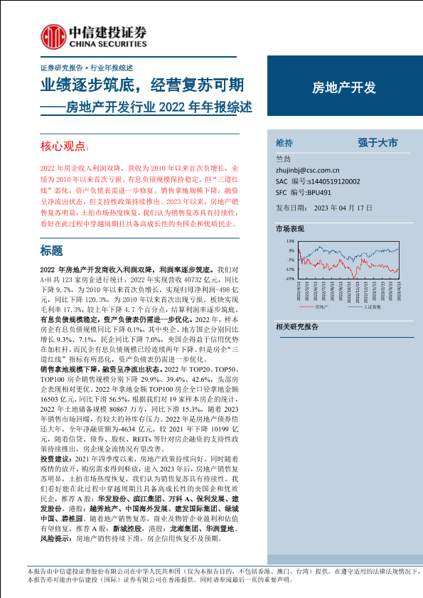 【中信建投证券】【20230417】房地产开发行业2022年年报综述:业绩逐步筑底,经营复苏可期-22页