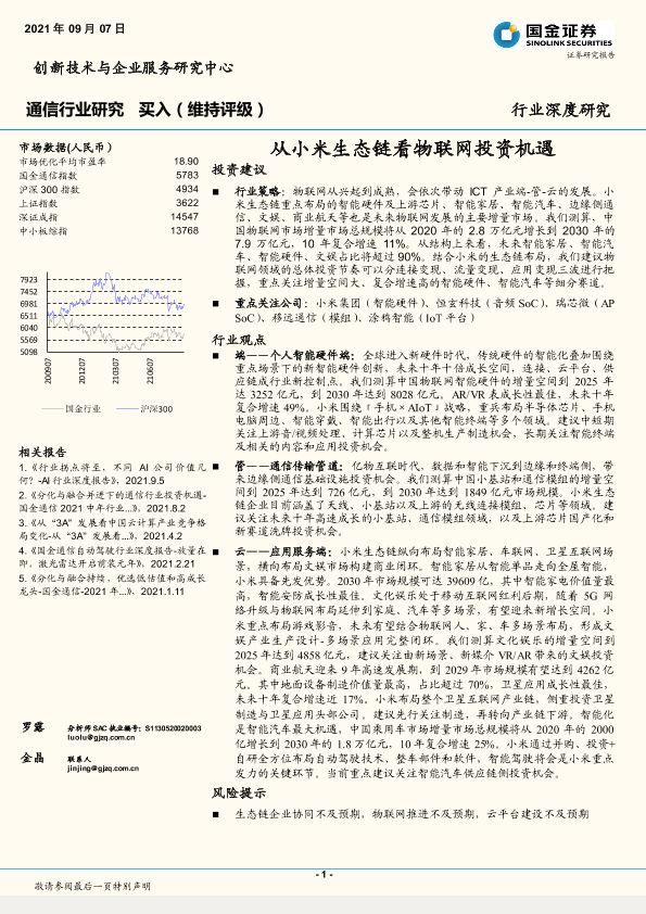 【国金证券】【20210907】通信行业:从小米生态链看物联网投资机遇-60页