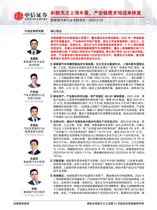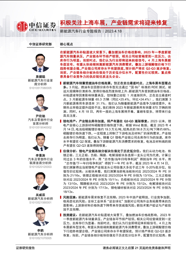 【中信证券】【20230418】新能源汽车行业专题报告:积极关注上海车展,产业链需求将迎来修复-22页