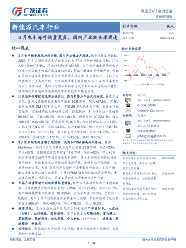 【广发证券】【20230415】新能源汽车行业深度分析:3月电车海外销量复苏,国内产业链去库提速-32页