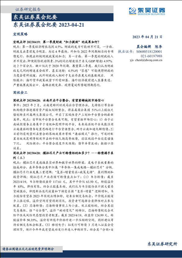 【东吴证券】【20230421】晨会纪要-20230421-东吴证券-27页