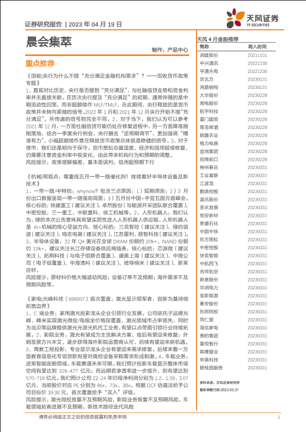 【天风证券】【20230419】晨会集萃-20230419-天风证券-17页