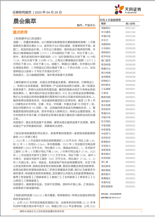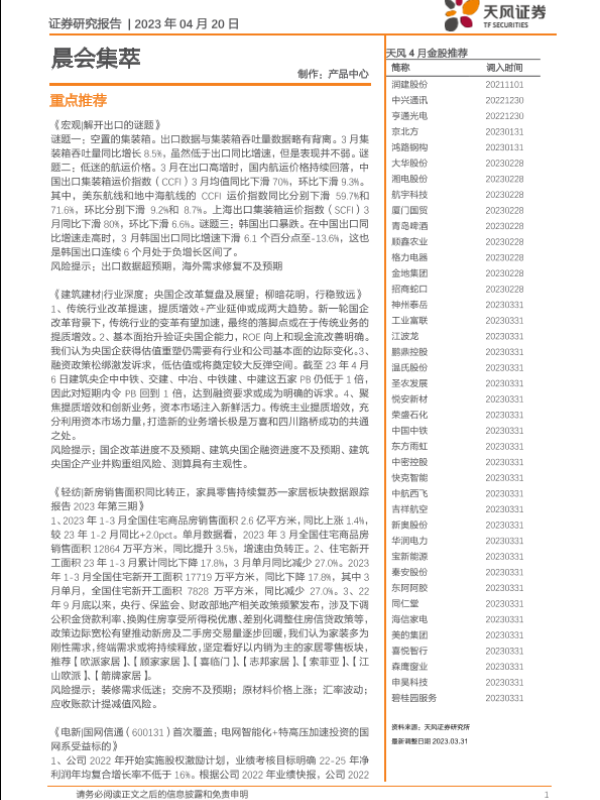 【天风证券】【20230420】晨会集萃-20230420-天风证券-19页