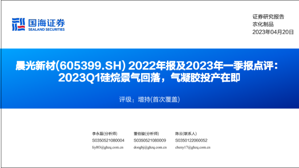 【国海证券】【20230420】晨光新材(605399)2022年报及2023年一季报点评:2023Q1硅烷景气回落,气凝胶投产在即-18页