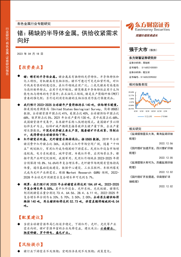 【东方财富证券】【20230418】有色金属行业专题研究:锗:稀缺的半导体金属,供给收紧需求向好-24页
