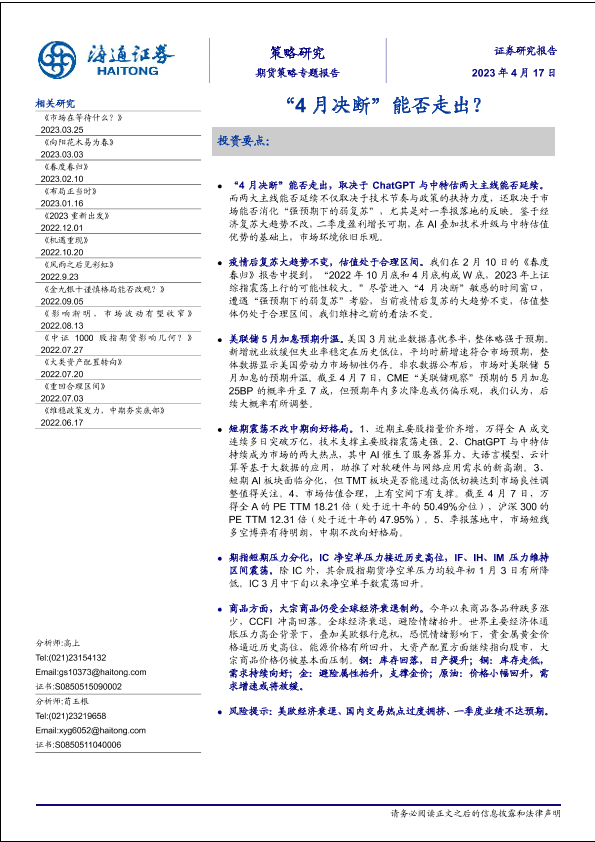 【海通证券】【20230417】期货策略专题报告:“4月决断”能否走出?-24页