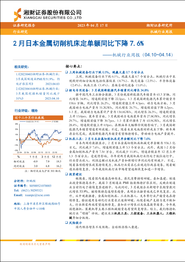 【湘财证券】【20230417】机械行业周报:2月日本金属切削机床定单额同比下降7.6%-15页