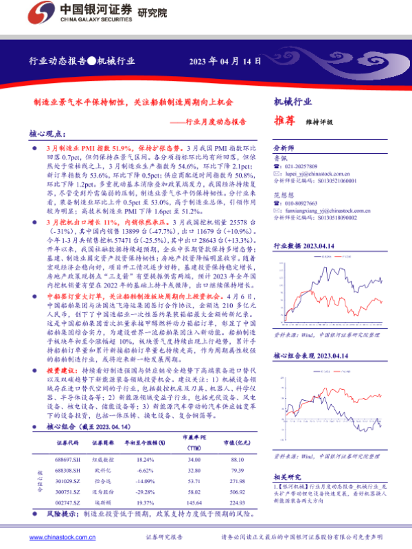 【银河证券】【20230414】机械行业月度动态报告:制造业景气水平保持韧性,关注船舶制造周期向上机会-30页
