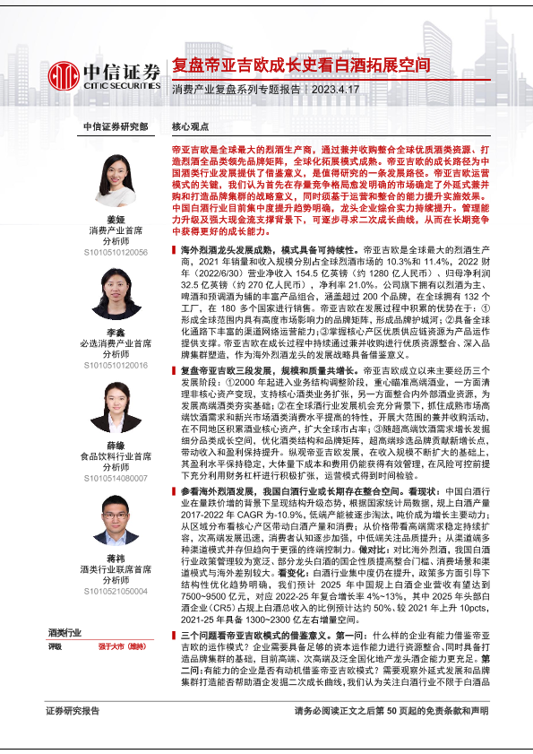 【中信证券】【20230417】消费产业复盘系列专题报告:复盘帝亚吉欧成长史看白酒拓展空间-49页