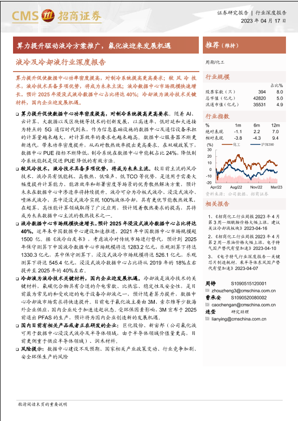 【海通证券】【20230417】液冷及冷却液行业深度报告:算力提升驱动液冷方案推广,氟化液迎来发展机遇-21页