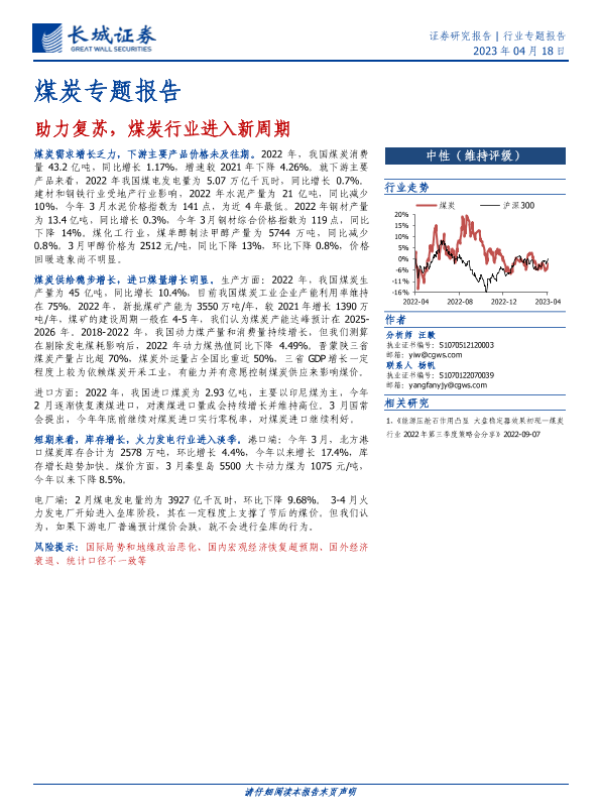 【长城证券】【20230418】煤炭行业专题报告:助力复苏,煤炭行业进入新周期-16页