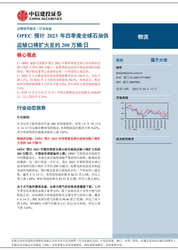 【中信建投证券】【20230417】物流行业:OPEC预计2023年四季度全球石油供应缺口将扩大至约200万桶日-20页