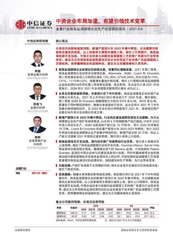 【中信证券】【20210908】金属行业南美盐湖提锂企业生产经营跟踪报告:中资企业布局加速,有望引领技术变革-23页